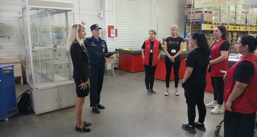 Так, работники МЧС и БДПО совместно организовали и провели тренировочную эвакуацию из оптового магазина «Светофор». Особенно важно трудовому коллективу, который работает в местах массового скопления людей, четко соблюдать и действовать в условиях возникновения чрезвычайных ситуаций, т.к. от их слаженных действий зависят сохранение жизни людей и материальных ценностей.