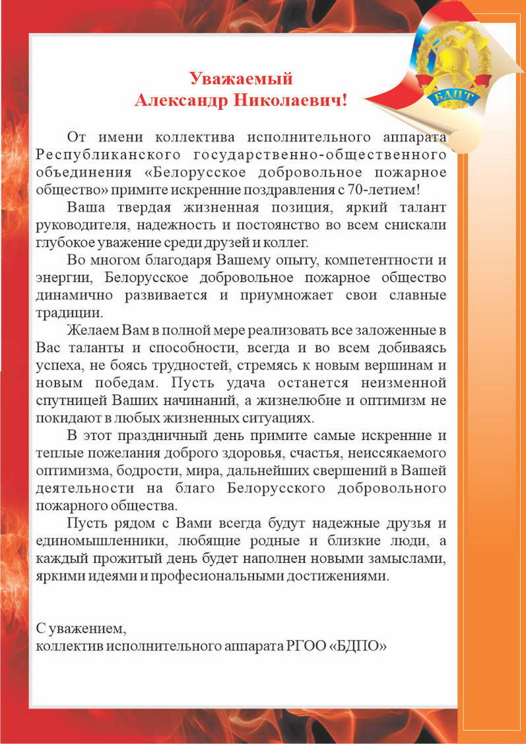 Поздравления с юбилеем Председателя РС РГОО «БДПО» Кудряшова Александра Николаевича